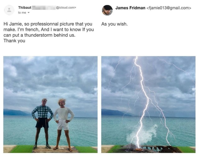 Photoshop experts are able to rework images into all kinds of fabricated realities. From color correction and filters to cropping and resizing, the powerful digital tool offers countless editing options. And while most Photoshop experts use the software for professional graphic design, British digital artist James Fridman uses it to troll the Internet. He’s known for taking requests to “fix” the images of people from all over the world. However, rather than take their directions seriously, the witty artist interprets their commission literally, resulting in hilarious and surreal images.