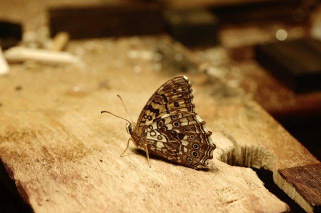 The 27-year old Fukuda, who was born and raised in Hokkaido, has been creating wood sculptures since he was in high school. At an early age he was drawn to a technique called wood inlay, a process that involves cutting a shaped void into a piece of wood and then filling that void with other pieces of wood. This, for example, is how he achieves the stunningly realistic shapes and colors of the wings of the Neope niphonica, a butterfly found in East Asia. Put differently, no artificial paints of any kind were used. Instead, Fukuda combined a variety of woods including teak, ebony and mulberry.