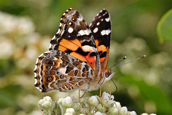 As its name suggests, the Painted Lady is a colorful creature. Its orange, black and white-patterned wings can be spotted throughout North America, Central America, Africa, Europe and Asia. (The butterfly is the most widely distributed in the world, according to Colorado State University). It’s part of the Brush-footed butterfly family, Nymphalidae, which owes its name to its members’ often hairy forelegs.