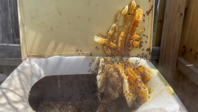 Watch as Texas Beeworks founder Erika Thompson moves section after section of comb out of the washing machine and into the wood frames that will slide safely into a wood box hive. […]
