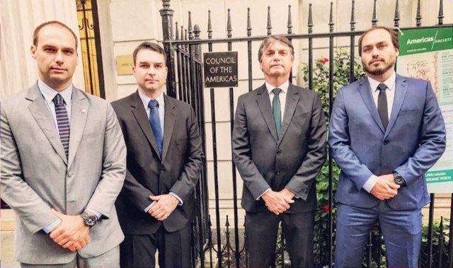 Jair Bolsonaro and his sons Eduardo, Flavio and Carlos at Council of the Americas Headquarters, New York, 2017