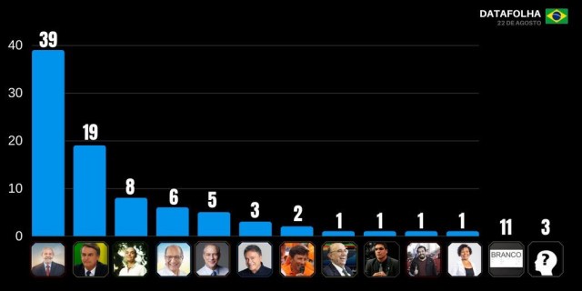 August 22 2020 DataFolha poll had former President Lula 20% ahead of nearest rival Jair Bolsonaro, and on brink of a first round victory