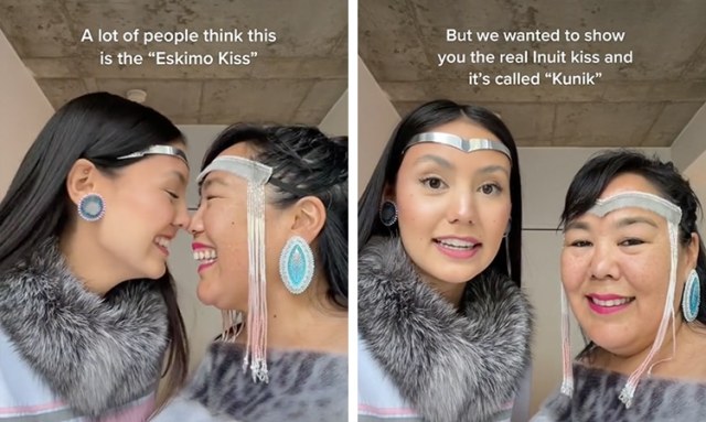 The term “eskimo kiss” might conjure up a cute image of two people rubbing noses; however, the traditional greeting is often misunderstood by Western culture. In a bid to teach more people about Inuit traditions, self-proclaimed “Proud Indigenous” woman Shina Novalinga shares educational videos on TikTok. In one of her most recent videos, she and her mother demonstrate the true “eskimo kiss,” which is actually called a kunik.