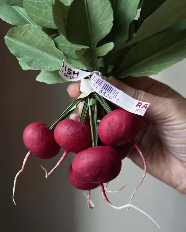 Make sure you’re plenty caffeinated before snacking on one of Ann Wood’s blackberries. The Minneapolis-based artist, who is half of the creative team behind Woodlucker (previously), crafts a vast array of florals, fruits, and insects so realistic that it takes a second glance to realize they’re made from paper. Delicate oyster mushrooms with wide caps and thinly folded gills grow from a hunk of wood, fuchsias with softly curved petals hang from a branch, and bundles of radishes with long, spindly roots appear like their plump, juicy counterparts.