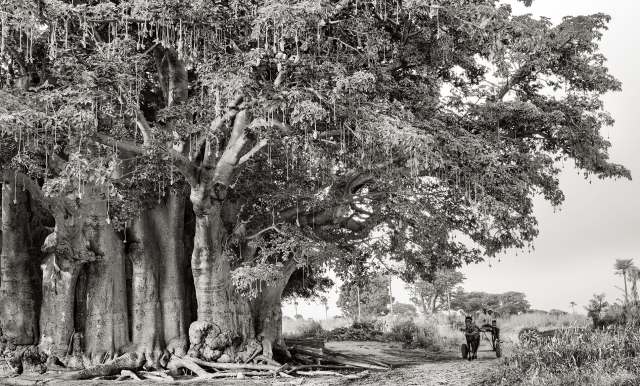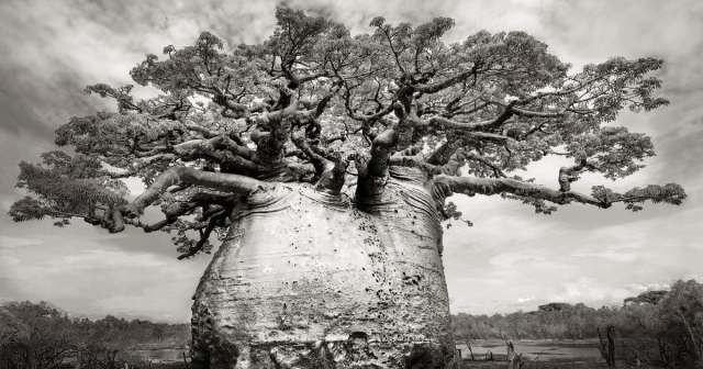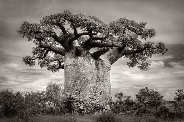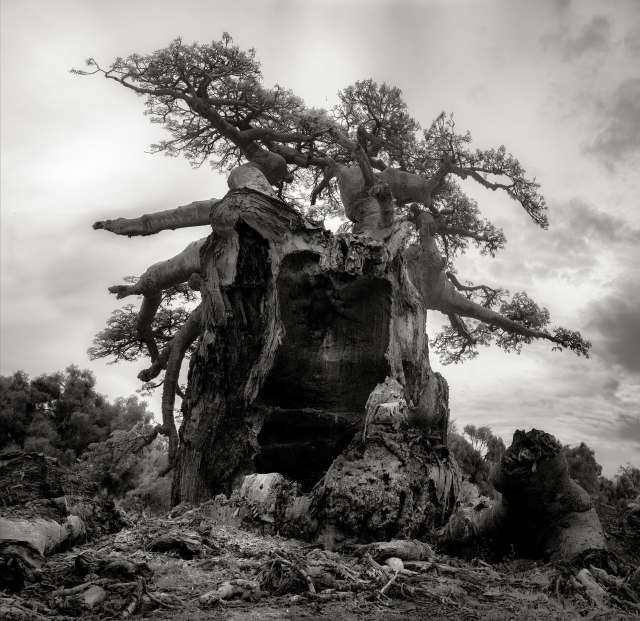 Bay Area photographer Beth Moon (previously) has been documenting the species since 2006 and traveled to the region when Tsitakakoike fell. There she captured the cracked, deteriorating emblem along with other baobabs in similar states of crisis throughout Madagascar, Senegal, and South Africa. Shot in dramatic black-and-white, the images are rich in texture and frame the baobabs’ wide, crackled trunks and branches that splay outward into massive tufted canopies.