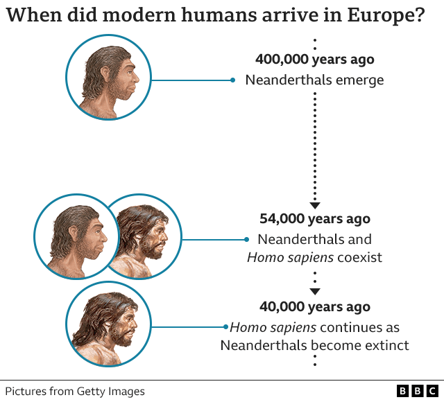 But the new discovery suggests that our species arrived much earlier and that the two species could have coexisted in Europe for more than 10,000 years before the Neanderthals went extinct.