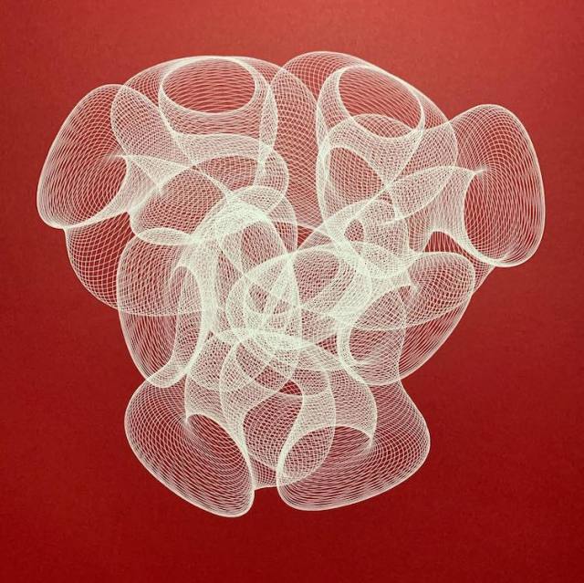 It’s easy to be baffled by the art of James Nolan Gandy at first glance. These mesh-like drawings, which range from neon-colored to black and white, appear to fold, curve, and vibrate above the paper. If you think it would be impossible for someone to produce these illustrations, you wouldn’t be wrong. But, you wouldn’t be completely correct, either. After creating custom furniture for 20 years, Nolan began working with metal, and one of the first projects he embarked on was a hand-built drawing machine. Several years later, he demonstrates the skills of his invention by making fascinating mechanical drawings.