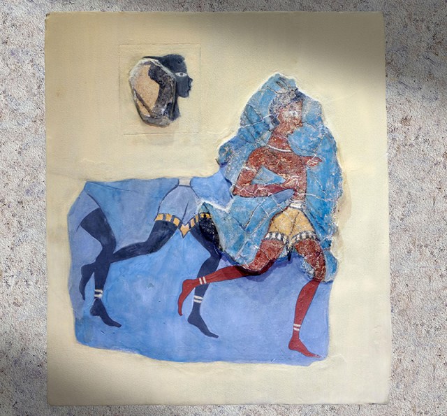 One of the earliest known depictions of black people outside of Africa appears on the wall of the ancient royal palace of Knossos in Crete. Under the auspices of King Minos, the legendary ruler of Crete whose name eventually became the label for an entire community, the mythical architect Daedalus is said to have constructed the earliest iteration of Knossos. A 20th-century reconstruction of this palace, which flourished in various forms between 1,700 BCE and 1,400 BCE, features the ‘Captain of the Blacks’ fresco, as it is popularly known, depicting three figures in flight. From left to right, three men run in close succession. They bear almost complete resemblance to each other, except for skin colour and height: the two men in the rear have black skin and are taller than the leader of the trio, who has brown skin. These bare-chested men wear skirts with a striped trim and two bands around each ankle. The shorter man in the scene holds two long, narrow objects in his right hand, and wears a feather in his hair. […]