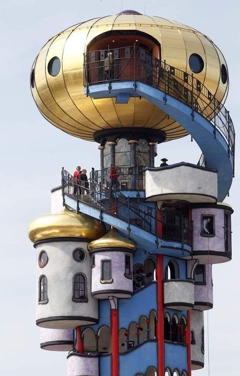 The small town of Uelzen in Germany has a train station that is designed by Hundertwasser. It is very beautiful as well. I love this tower!