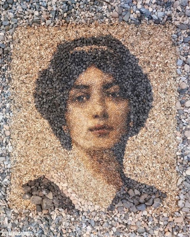 While some of Bateman’s previous works used larger stones, in this piece, he relies on much finer pebbles. This smaller medium helps him model Frida’s face with more precision. […]