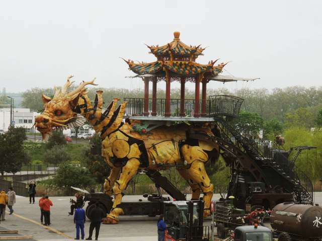 The street theater group known as La Machine revived one of its legendary beasts for an ongoing show in Toulouse. “Long Ma,” an enormous dragon-horse hybrid weighing 45 tons and standing 11 meters tall, was originally unleashed in Beijing in 2014 and now joins a minotaur and gigantic spider for an ongoing exhibition at La Halle in the French city. Each day through May 8, a team of artists animates the mechanical creature, which can be seen trotting, galloping, and rearing upward through the streets while she greets her similarly massive companions.