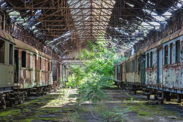 In his most recent collection, Jonk visits 35 locations in 25 countries and captures the crumbling roofs, peeling facades, and rusted trains in their midst.[…]