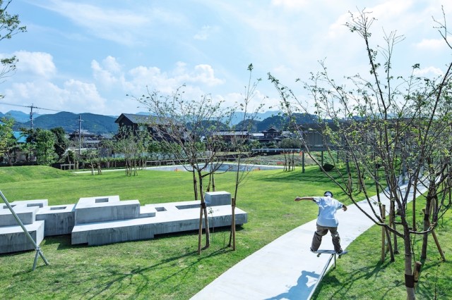 The new 4000 sq m facility, located in the Hasami district of Nagasaki, hosts a sprawling park, cafe and shop, all designed by architect Daisuke Motogi of DDAA. Open and inviting, the store is bright and airy, connecting the indoors and outdoors through a pergola, which is much like a gazebo except it allows for sunlight to shine through its slatted roof.