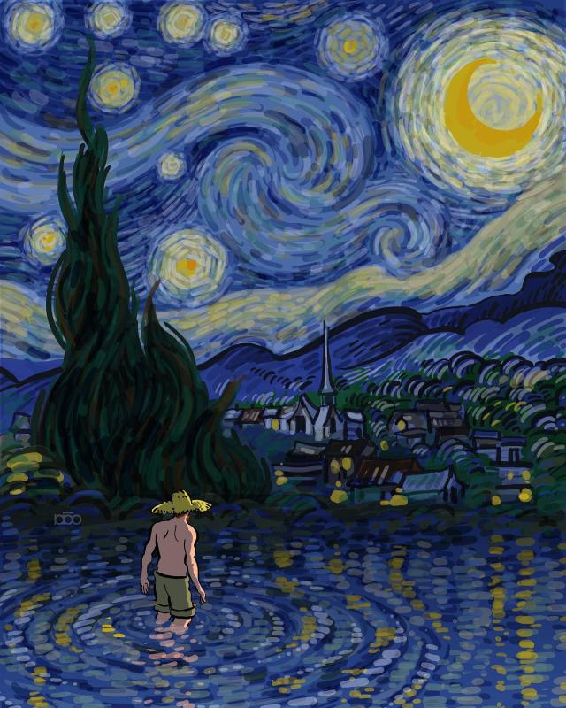 Like many creatives, cartoonist and illustrator Alireza Karimi Moghaddam fell in love with Vincent van Gogh’s work and was compelled by his story. Moghaddam was a teenager when he first began admiring the artist’s style and vibrant colors. Immersing himself in Van Gogh’s history, Moghaddam learned—and continues to learn—about the iconic figure and has created an entire body of work inspired by his life.