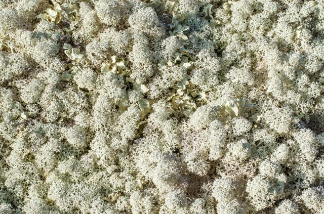 Mid-winter in the Arctic is either dark or twilight, when the sun is below the horizon, all day. Reindeer need to find and uncover their winter food, lichen, by brushing the snow-covered ground with their hooves, antlers and muzzles. Lichens are plentiful in the Arctic – an ideal food source that reindeer can find wherever they go.