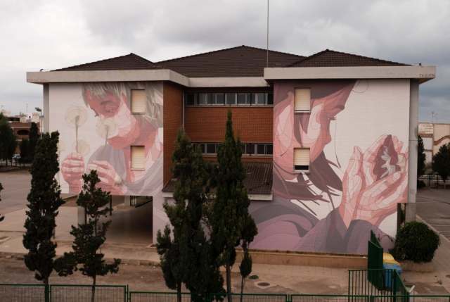 Thin, structural lines delineate a magpie wing and contour a child’s nose or cheekbone in Taquen’s murals. Working with a color palette of pastels and neutral tones, the Spanish artist (previously) paints large-scale portraits, fragments of limbs, and birds, often leaving the composition’s skeletal forms visible. “The supports are just as important as the work itself,” he tells Colossal. “I look for camouflage, minimalism, and mixture. In the end, it is also a metaphorical form of the footprint that I believe we should leave in the places we pass through.”