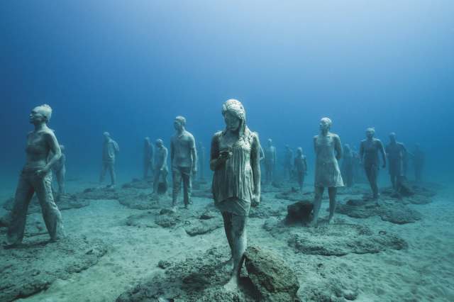 Jason deCaires Taylor, “Rubicon” (2016), stainless steel, pH-neutral cement, basalt and aggregates, installation view, Museo Atlántico, Las Coloradas, Lanzarote, Atlantic Oceanl. Photo courtesy of the artist