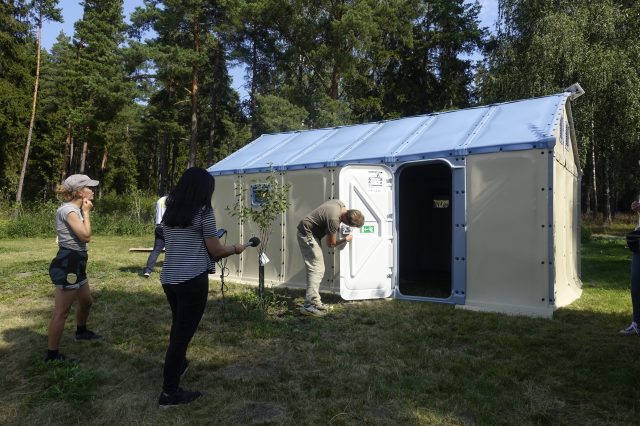 On a day of record-setting heat in Sweden, Better Shelter was visited by the production team at the BBC World Service – People Fixing the World podcast, during a building workshop in a small countryside village on the outskirts of Stockholm.