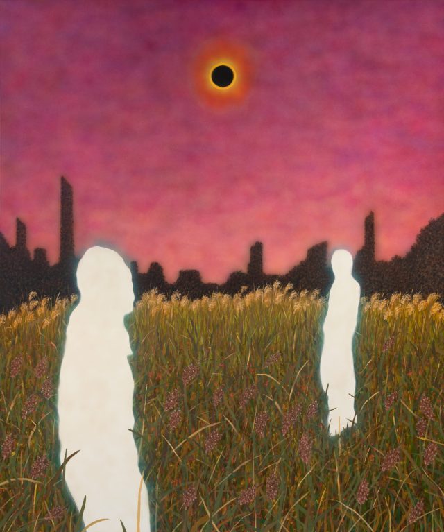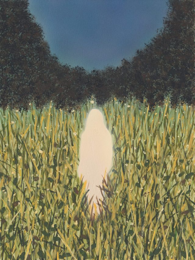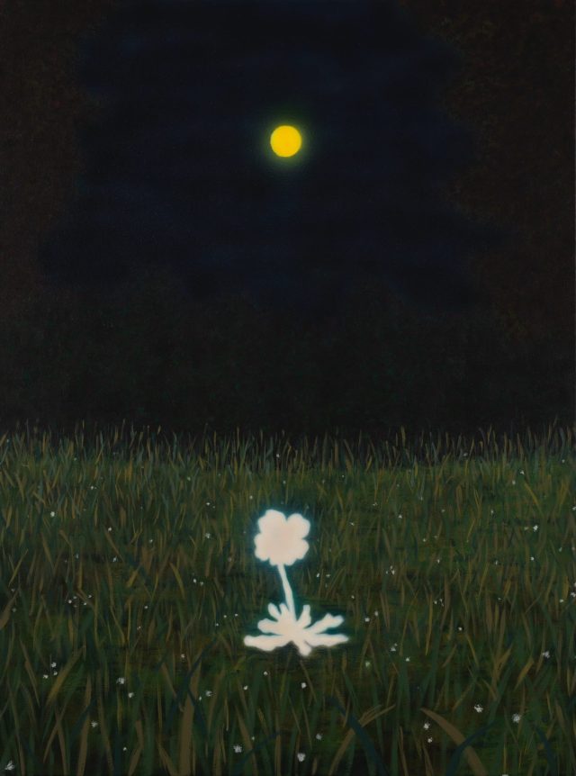 A sense of solitude and the finitude of time pervade the quiet, introspective works by Sung Hwa Kim. Rendering overgrown landscapes shrouded by night, the Korean artist wields the connection between ephemerality and memory, sometimes invoking nostalgia, as well. His acrylic paintings focus on fleeting acts like a glowing lightning bug or butterfly hovering above the grass while utilizing light to “symbolize the spirit of things we once loved, have lost, despair and longing. I wanted to capture these feelings and tell the viewers that even in our darkest times, there’s always light and not lose hope,” he shares.