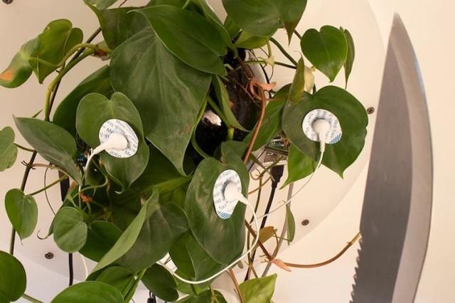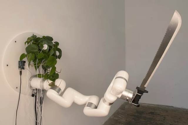 Believe it or not, the plant is the brain behind this slashing, swiping, and jabbing robot arm holding a machete.