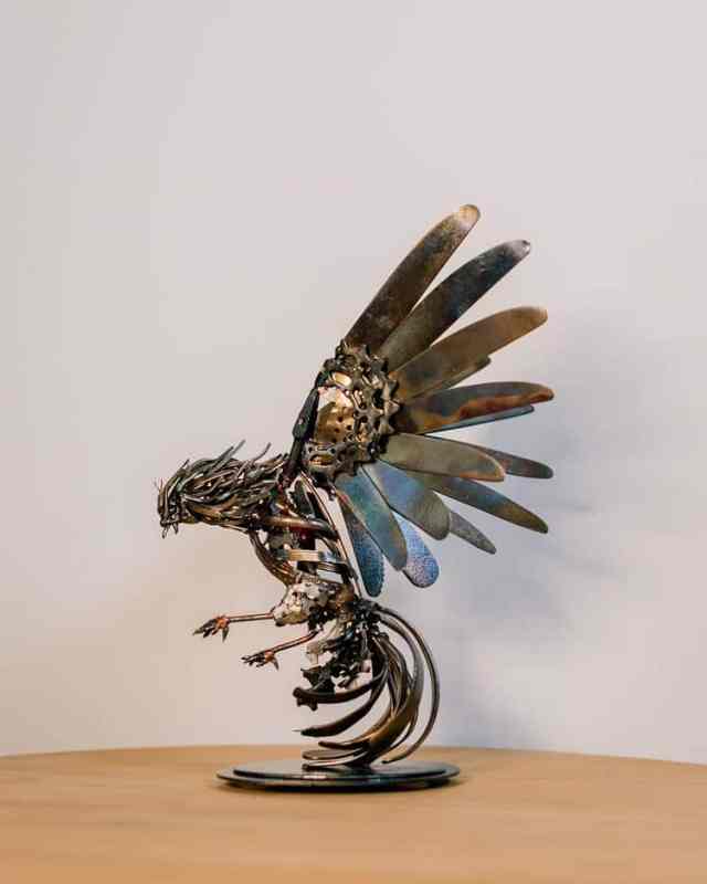 Jeffrey picked up welding during her senior year of high school and has continued honing her skills ever since. After seeing other artists creating sculptures with scrap metal, she was inspired to upcycle old materials with her art. “There is something about taking what was discarded and giving it new life, which intrigues me,” she says on her website. “The process of finding different metal pieces of ‘trash’ and seeing the potential of it being used in a sculpture and then trying to accurately create a sculpture that captures the life and attitude of an animal is a process that has my mind constantly working.”[…]