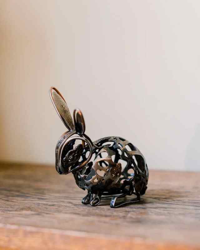 Artist Leah Jeffrey, better known as Bruised Reed Studio, gives scrap metal a new life. She uses discarded materials to create exquisite modern sculptures of animals such as birds, frogs, rabbits, and more. These welded pieces lovingly depict different fauna while also maintaining some of the unique characteristics of the individual parts including gears and mesh wire.