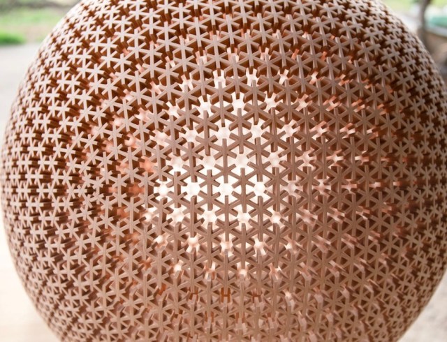 Breaking that mold is Mai Suzuki and kumiko craftsman Kazuhiro Kadowaki who, together, have created spherical kumiko that offer new and exciting applications.