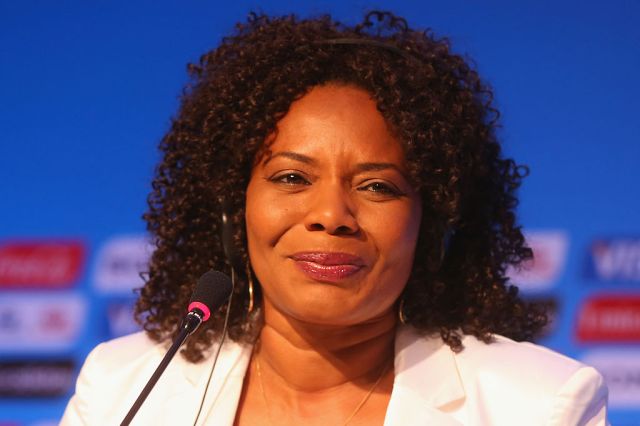 Singer Margareth Menezes at a press conference at Sauipe Park in 2013 in Bahia, Brazil. (Photo by Alexander Hassenstein, FIFA/FIFA via Getty) Images.