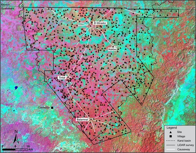 Mayan sites and causeways in the Mirador-Calakmul Karst Basin (MCKB). (Photo: Hansen et al.)
