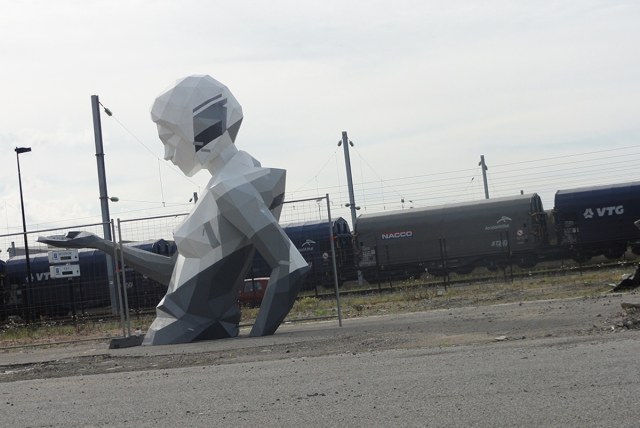 nterestingly, Pressure 1.2 involves more than just the sculpture of a woman. After installing the statue, Mesguich also painted the word “user” on a freight car parked close to the piece. This aspect lasted only for a day until the train ultimately left its position. But the sculpture remained where it was, stuck between the fence, until a storm damaged it, sometime later.[…]