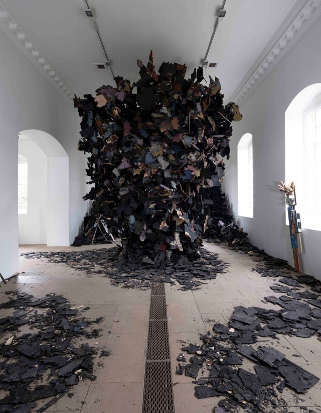 In the 18th-century chapel at Yorkshire Sculpture Park, a new installation by Leonardo Drew explodes toward the ceiling in a massive plume.