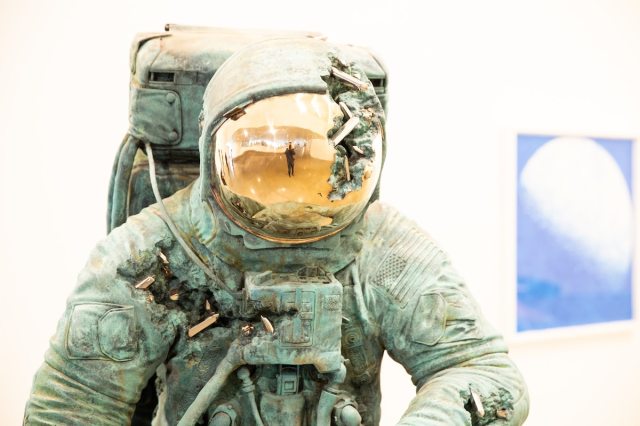 One of the most identifiable pieces is a replica of the 1981 DeLorean, the time-traveling car from the Back to the Future film franchise. It’s patinated to show its age and looks like it’s been dug up. There are even chunks missing from it that show its inner structure. An astronaut space suit has a similar treatment with part of it showing decay. These striking elements are placed alongside other future ruins including sports equipment and the telephone.[…]