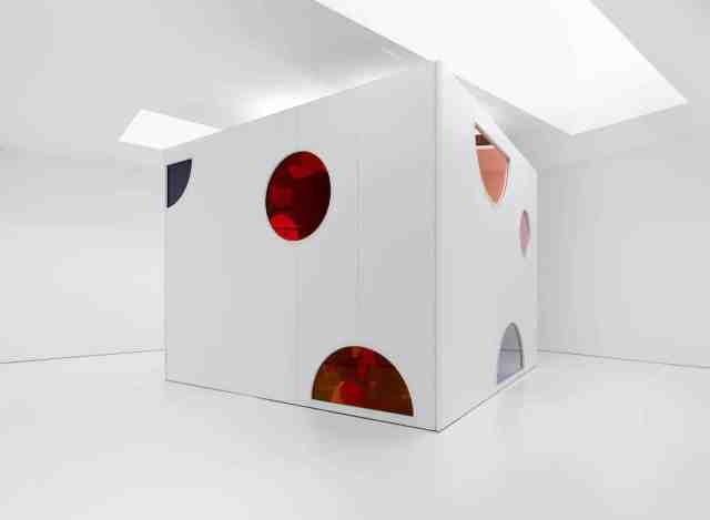 The circular openings allow light to enter the immersive space.