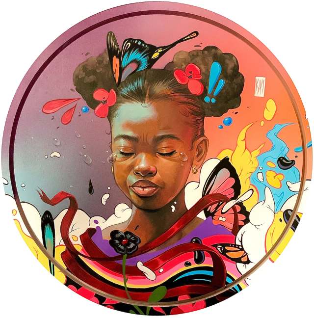“Pure Intentions,” acrylic and aerosol on linen, 24 x 24 inches. All images © Kayla Mahaffey