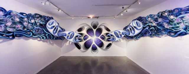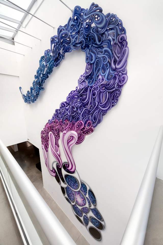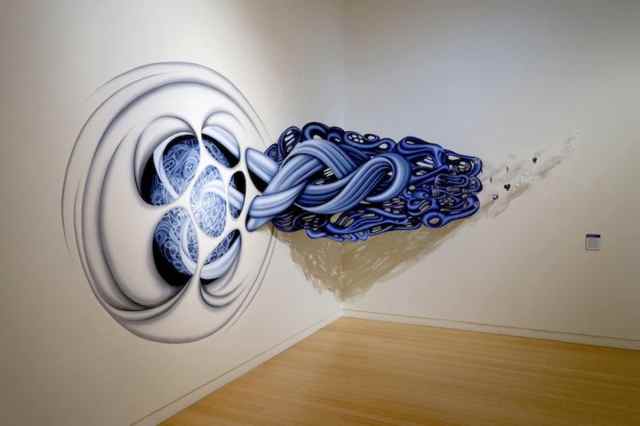 This artist creates 3D murals that look like shapes and colors are traveling between dimensions.