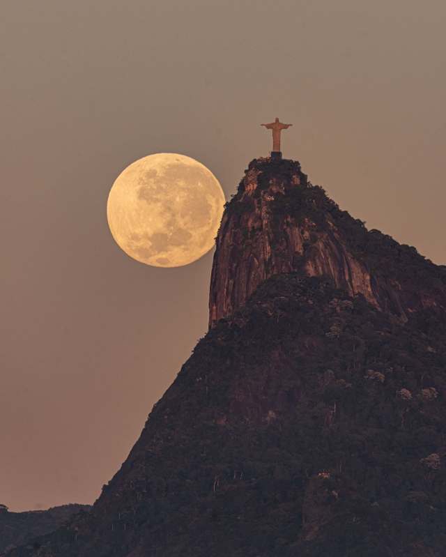 Since the early 20th century, the massive Christ the Redeemer statue has stood at the tip of the Corcovado mountain, spreading his arms and overlooking Rio de Janeiro. Scaling nearly 40 meters from the base of its pedestal to the top of the figure’s head, the art deco sculpture is a landmark in Tijuca National Park and a busy destination for tourists. Brazilian photographer Leonardo Sens has also set his sights on the cultural icon in recent years, hoping to catch a glimpse of the moon perfectly nestled within Christ’s hands.