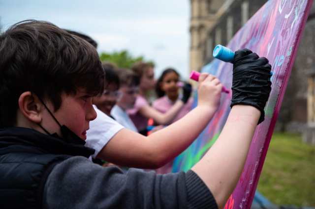 While taking immense inspiration from the classical environment of St. Albans, Steel is also spurred on by the workshops and events he holds as an artist in residence. Over the course of his time at St. Albans, he has guided local children and adults through the steps to produce their own pieces of graffiti art. It’s something that has given him a new sense of purpose.