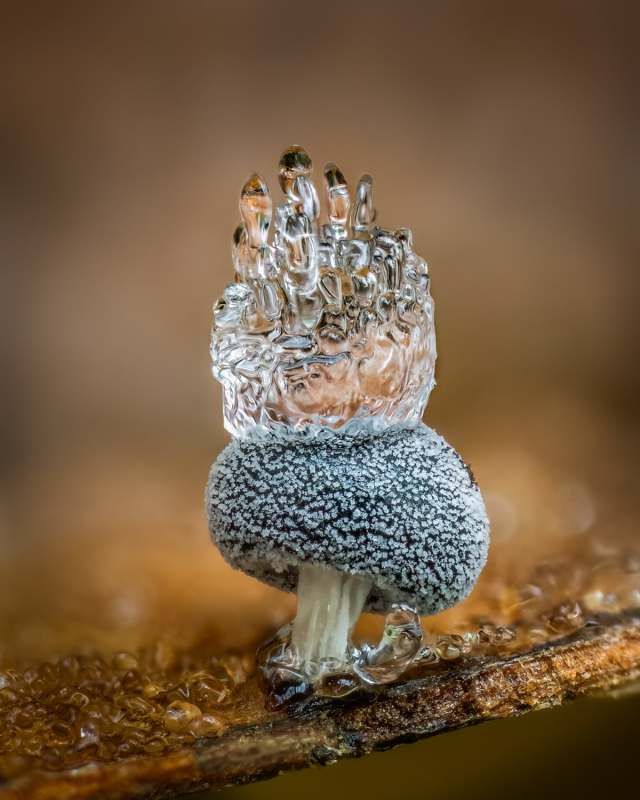 Photographer Barry Webb (previously) continues his hunt for the speckled, glimmering, and ice-crested organisms that pop up near his home in South Buckinghamshire, U.K. Armed with a 90-millimeter macro lens, Webb ventures into woodlands and other natural areas where slime molds and fungi thrive. There, he zeroes in on their microscopic features, documenting their wildly diverse characteristics that often last for just a brief moment in time.