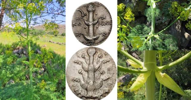 The Turkish endemic Ferula species (left) and a similar plant on Cyrenaic coins (right). (Photo: Miski, 2021)