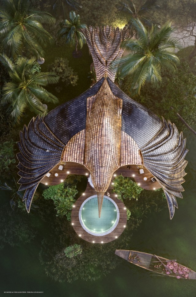 Designer Thilina Liyanage imagines structures that are as massive as they are mesmerizing. Using his skills in 3D visualization and his endless supply of ideas, Liyanage depicts enormous pieces of architecture inspired by the animal kingdom. No animal is off limits for his creative renderings, whether they roam the sky, wade through water, or are land dwellers, the designer finds a way to incorporate a range of creatures in his work.