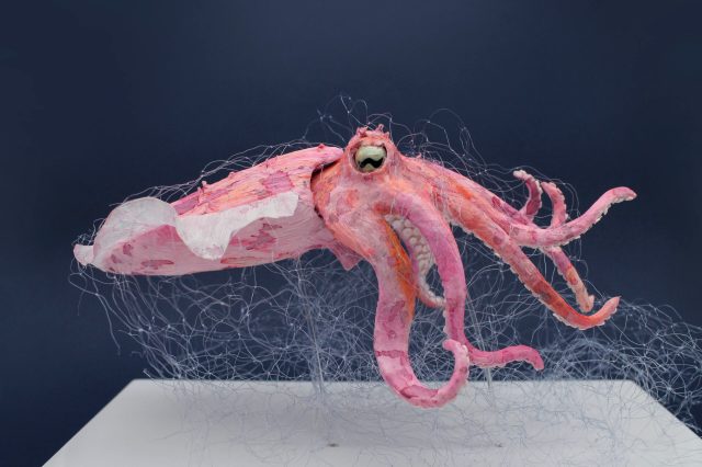 Tina Kraus (previously) recreates nature’s beauty, idiosyncrasies, and diversity through her intricate paper sculptures. Though the environment has been a source of inspiration since her childhood, Kraus explains to Colossal, “In the past decade, I have become more and more worried about the future. The climate crisis, pollution, and the loss of biodiversity already have a big impact on nature and life on this planet.” These disquietudes gave rise to her Paper Life! Ocean series, in which she focused on marine pollution by depicting a hermit crab living in a tin can, a squid trapped in a fishing net, and more.