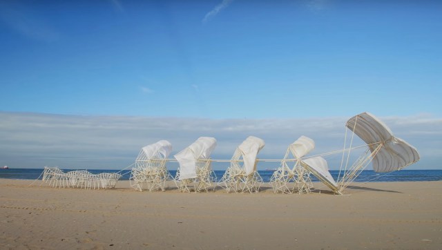 Throughout the summer, Jansen experimented with connecting several units together, which could work in succession. βAnimaris Rex is a herd of beach animals whose specimens hold each other as defense against storms,β he says. βAs individuals they would simply blow over, but as a group, the chance of surviving a storm would be greater.β Propelled by the wind with a series of large sails, the individual modules move in tandem to form a single entity […]