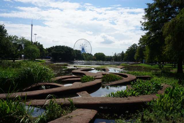 Patricia Johanson, “Fair Park Lagoon” (1981–86), gunite, native plants, and animal species, For the People, the Meadows Foundation, Communities Foundation of Texas, Texas Commission on the Arts and their private and corporate donations, permanently sited in Fair Park, Dallas. Image by Michael Barera, © Patricia Johanson, courtesy of the artist