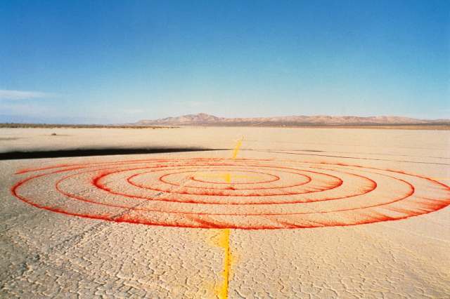 Lita Albuquerque, “Spine of the Earth” (1980), pigment, rock, and wood sundial, El Mirage Lake, Mojave Desert, California. Image © Lita Albuquerque, courtesy of the artist and Kohn Gallery, Los Angeles. All images courtesy of Artbook D.A.P