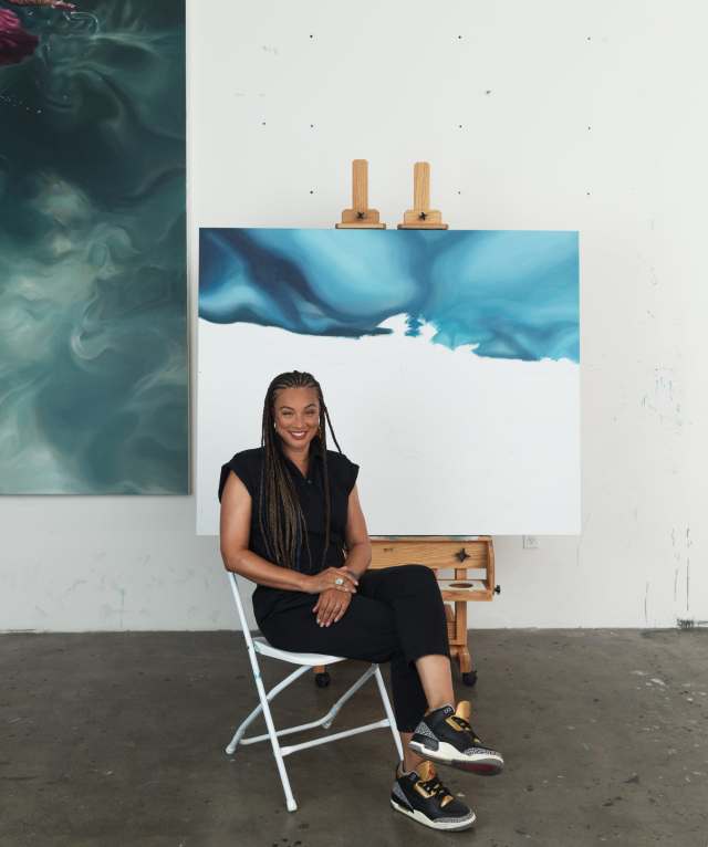 There’s an uncertainty and illegibility that the artist gravitates toward as she reminds us that predicting outcomes isn’t always possible. She even likens the process of painting in acrylics to that of floating, two physical acts that both require a release of control. “All of the dark colors look alike when they are wet,” she says. “You have to trust yourself and (your) ability. The experience was really fun, to put it simply. I was excited to wait for the outcome when it dried.”[…]