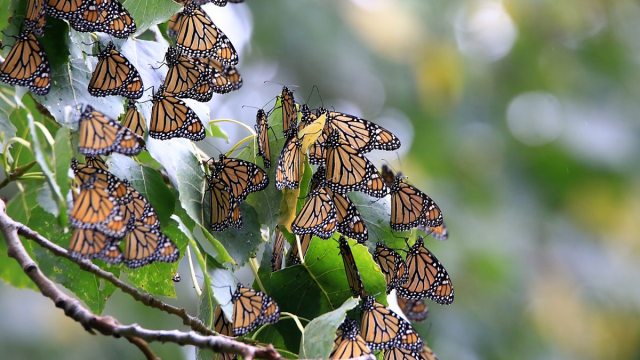 (Image: Flock of butterflies cover a tree branch. Credit: Douglas Sacha/Getty Images)