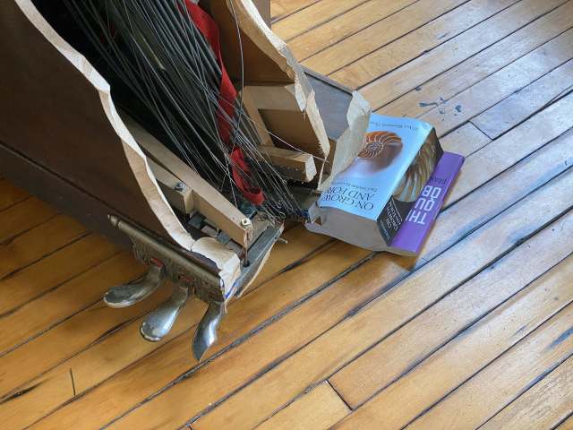 Behind the hammers and pins of most upright pianos is a hard mass of spruce, maple, or mahogany, what artist Maskull Lasserre (previously) refers to as a “secret volume of solid wood.”
