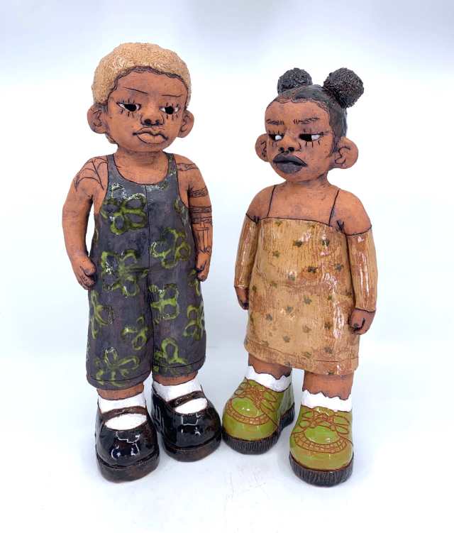 Spirited, assertive, and inquisitive, Sydnie Jimenez’s ceramic figures confidently gaze at the viewer with a range of expressions and styles.