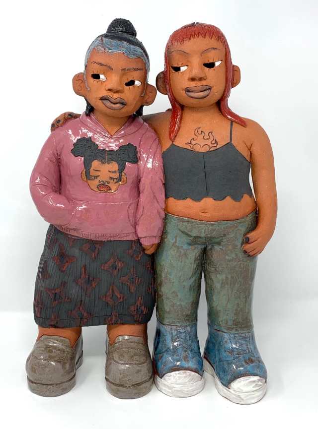 In museums or galleries, artist Sydnie Jimenez never saw figurative sculpture that looked like her or that felt relatable. Taking inspiration from her surroundings where she grew up in north Georgia, then Chicago where she attended the School of the Art Institute, she discovered a love for ceramics as a way to celebrate Black and brown bodies and express individuality, agency, and empathy in a way she didn’t see in art history.