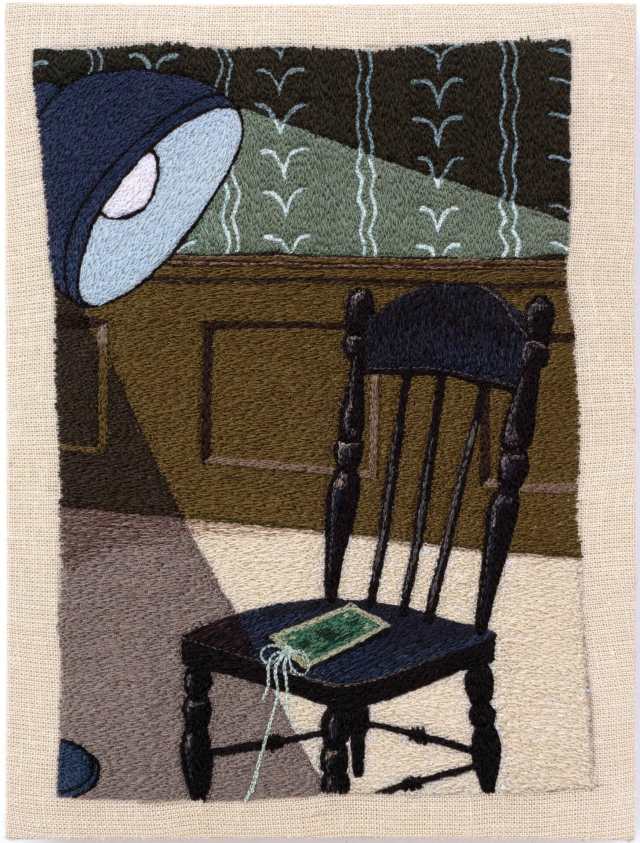 Chicago-based artist Peter Frederiksen (previously) pinpoints the most ridiculous, exaggerated moments in cartoons and animated shows to dramatize them further into absurdity. Cropping a single outlandish action or event, Frederiksen uses free-motion machine embroidery to stitch stylized compositions that, out of context, emphasize their dark humor.